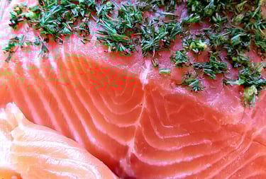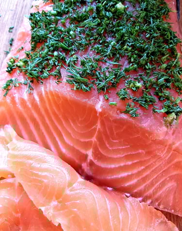 gravlaks z łososia lub troci fiordowej z koperkiem lub czerwonym pieprzem